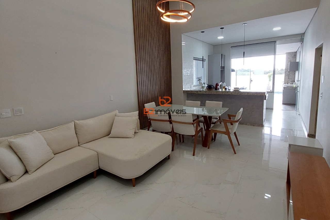 Linda casa , Localizada em um dos condomínios que mais cresce na cidade, esta residência é ideal para quem busca conforto, praticidade e um ambiente contemporâneo. O imóvel conta com: Sala ampla para dois ambientes Cozinha americana integrada 3 quartos, sendo 1 suíte Banheiro social Na área externa, você encontra: Lavanderia Espaço gourmet com varanda Piscina Quintal gramado Garagem para 2 carros Uma excelente oportunidade para viver com qualidade de vida e segurança. Agende uma visita e venha se encantar!